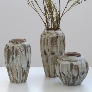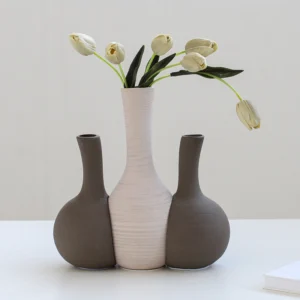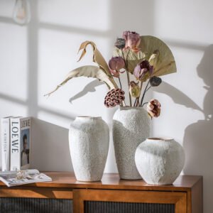 $35 – $36Beige ceramic vases