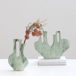 Green and beige vases